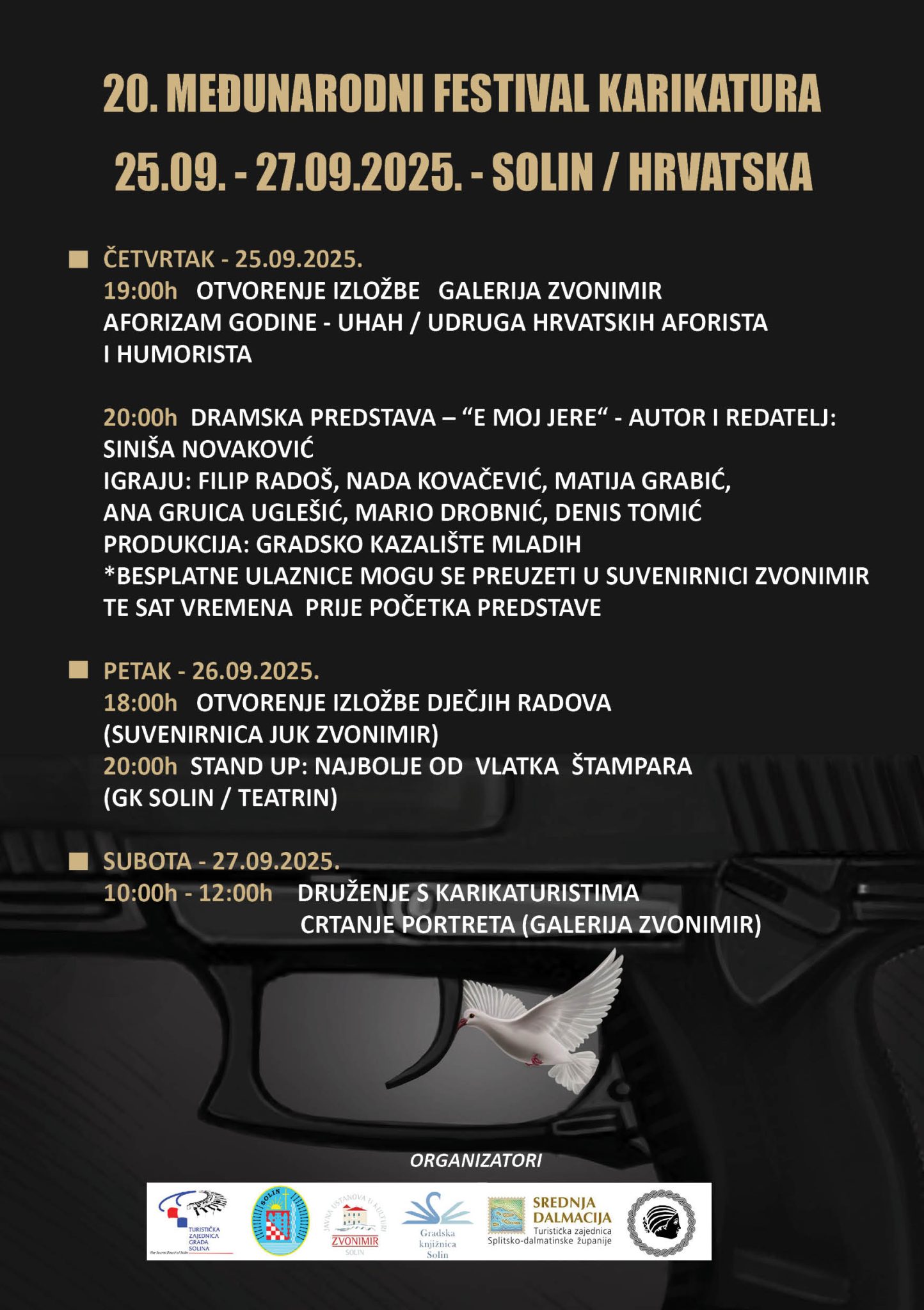 Riječ je o festivalu u organizaciji TZ grada Solina, Javne ustanova u kulturi Zvonimir i GK Solin pod pokroviteljstvom grada Solina i Turističke zajednice Splitsko dalmatinske županije u kojem sudjeluje preko 1000 autora iz 69 zemalja svijeta. Program festivala uključuje izložbu radova koji u su u konkurenciji za nagradu, izložbu dječjih radova, radionice izrade karikatura otvorene za javnost te dramska događanja.