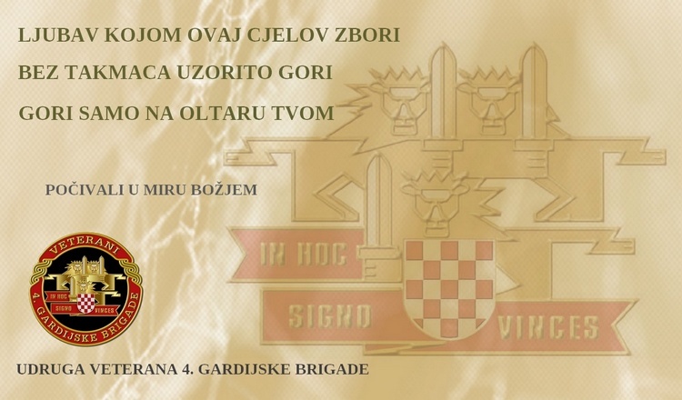 In hoc signo vinces – U ovom ćeš znaku pobijediti, nosila je 4. Brigada Zbora narodne garde u svom znaku i srcima svojih boraca.4. Gardijska pauci