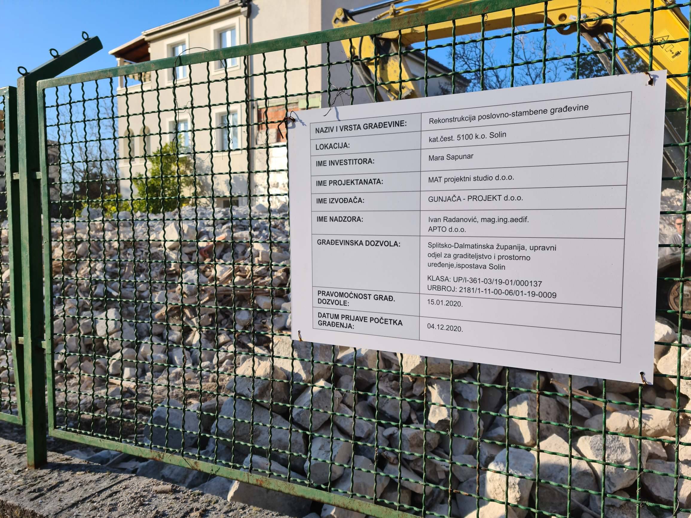 Netko je izdao građevnu dozvolu, netko je upoznat sa cijelim postupkom. Zašto na tabeli piše REKONSTRUKCIJA. Zar se i za to ne triba ishodovati potrebni papri. Ili rekonstrukcija podrazumjeva rušenje. Možda je ovi radnik u pravu pa će se izgradit virna kopija. I na to bi tribalo ponudit odgovore. Ma bojin se da nitko nema volje.