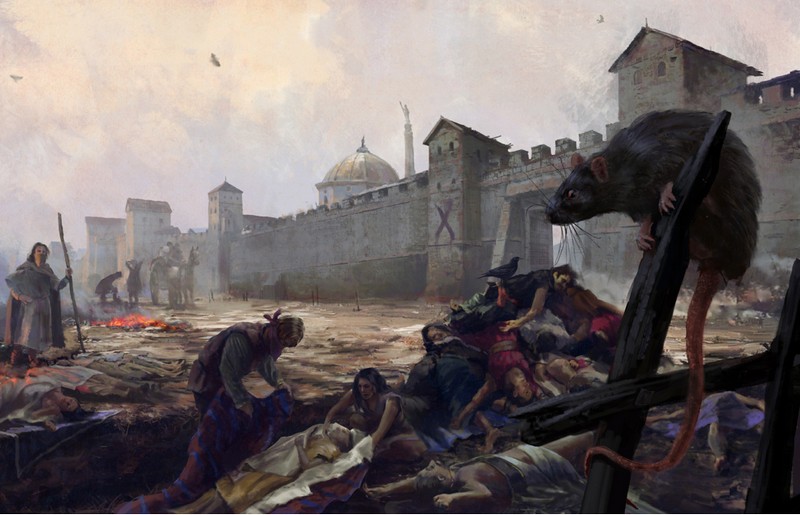 Umjetnički prikaz tzv. Justinijanove kuge – pandemije koja je zahvatila Bizantsko Carstvo, a potom i ostatak Sredozemlja za vrijeme vladavine bizantskog cara Justinijana (Vilius Petrauskas)