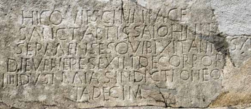 Natpis na salonitanskom sarkofagu opatice Ivane: „Hic requiescit in pace sanct(a) ab(ba)tisa Ioh(a)nna Sermenses…“