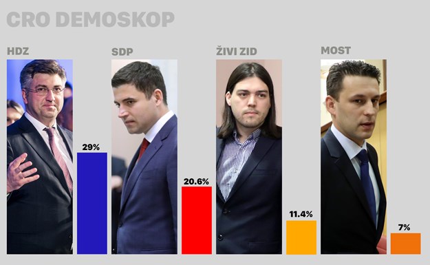 Objavljen je prvi ovogodišnji CRO Demoskop, istraživanje javnog mnijenja koje je početkom siječnja provela agencija Promocija plus (od 2. do 5. siječnja). Kako prenosi N1 Televizija, da su parlamentarni izbori provedeni početkom siječnja (cijela Hrvatska jedna izborna jedinica uz izlaznost 53-59 %), HDZ bi bio relativni pobjednik izbora.