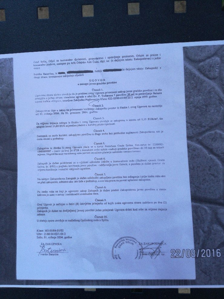 Osim datuma u ugovoru je čudno što spomenuta Javna površina je zapravo vlasništvo stanare te zgrade.