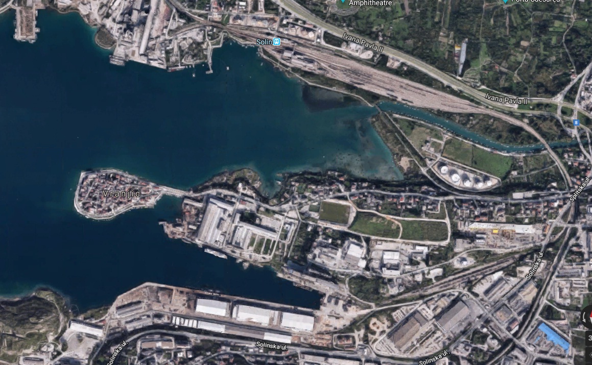 Not only cement factory but there are INA (industry of oil) reservoirs that are situated on north of Vranjic in Solin and in the entrance to the city it is gas-oil station.