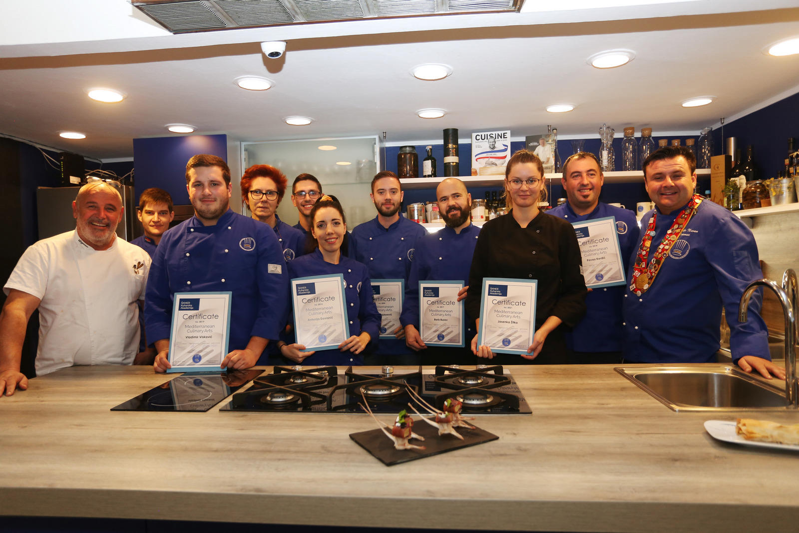 Treća generacija polaznika završila je u utorak Mediterranean Culinary Arts (MCA) modul 1 te dobila diplome u našoj Kuharskoj Akademiji. Program su vodili Stevo Karapandža, Hrvoje Zirojević, Željko Neven Bremec, pastry chef Robert Hromalić te gostujući predavač Martin Grubiša, šef kuhinje zdravstvenog hotela Marvie, koji je imao zadatak da polaznike uvede u suvremenu mediteransku gastronomiju bez glutena.