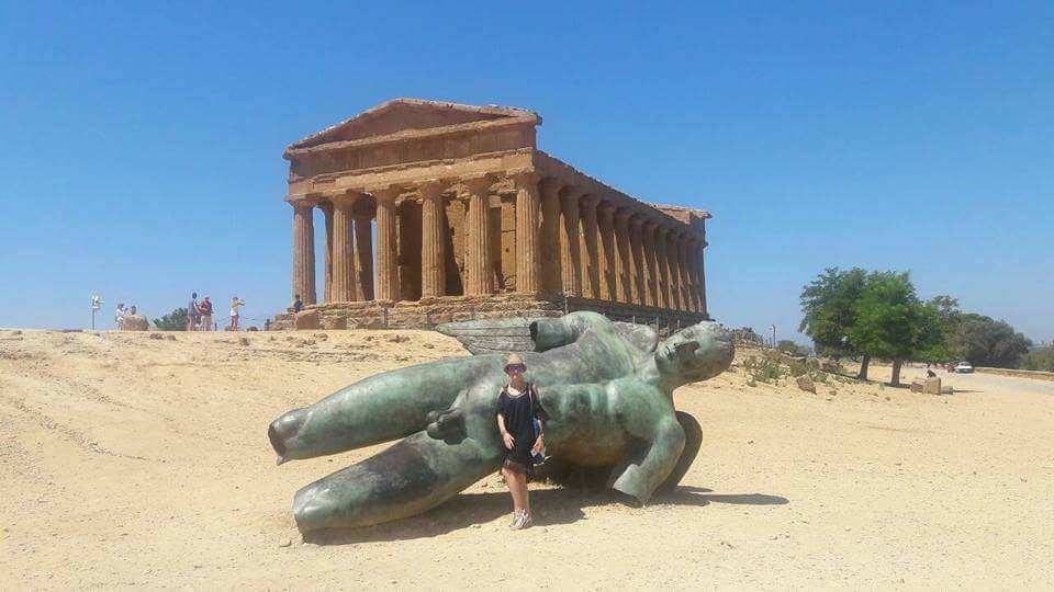 Domogle se mi po pasjoj žegi Konkordijinog hrama, malo se zavalile na prvu skalu, poslikavale, a posebno smo uživale dok smo se slikavale i promatrale druge turiste kako se sa guštom slikaju s dobro nabildanim nagim frajerom koji je lipo zauzea bočni položaj odma ispod Konkordije. Ma, koliko god on lipo figura bez mudanti nije se bilo lako prislonit na njega na onih četrdeset stupnjeva u zraku, jer se on bidan totalno užaria.