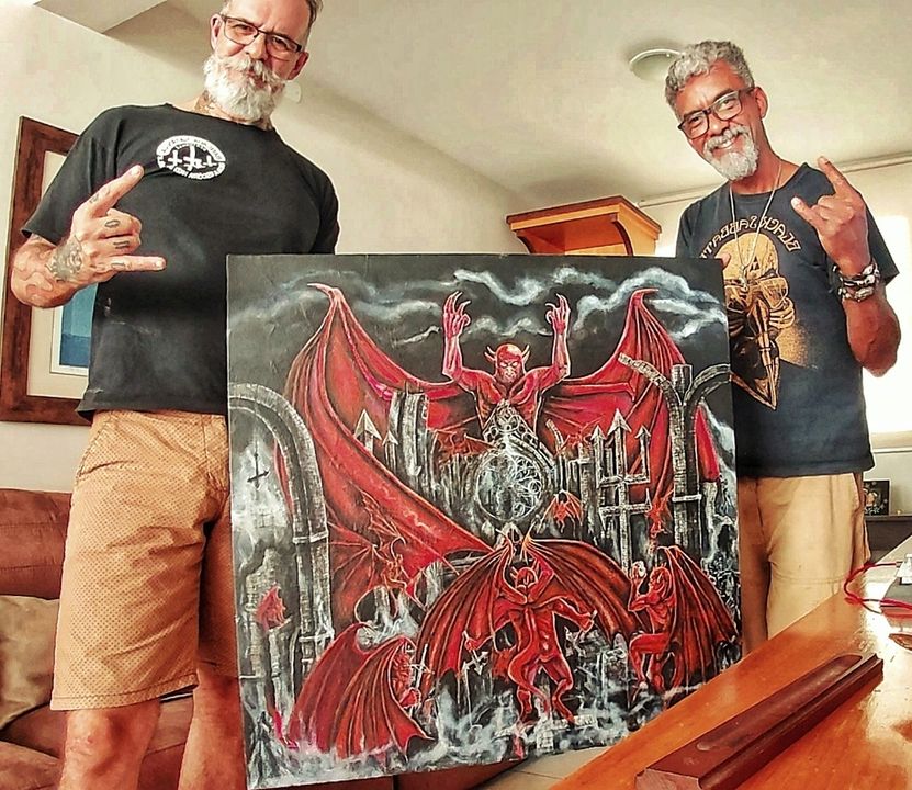 I’m an old school style enthusiatic and I try to follow techniques of Master artists like Salvador Dali, HR Giger, Frazetta, Boris Valejo among others. However, my rustic style was consecrated with the painting I did for Sepultura’s album cover “Bestial Devastation”. Following that I just tried to improve without losing the essence of what I had already started.