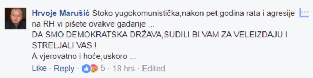 U komentarima upućenima 31.7. oko 18 sati Hrvoje Marušić je putem svog Facebook profila uputio sljedeće komentare: