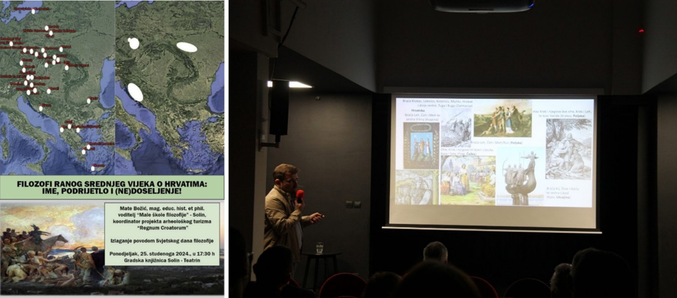 Izlaganje u Teatrinu solinske gradske knjižnice 25. studenoga 2024. (“Filozofi ranog srednjeg vijeka o Hrvatima: ime, podrijetlo i (ne)doseljenje!“), održano povodom Svjetskog dana filozofije, koji se redovito obilježava trećeg četvrtka u mjesecu studenom s ciljem poticanja kritičkog mišljenja, neovisnosti i kreativnosti