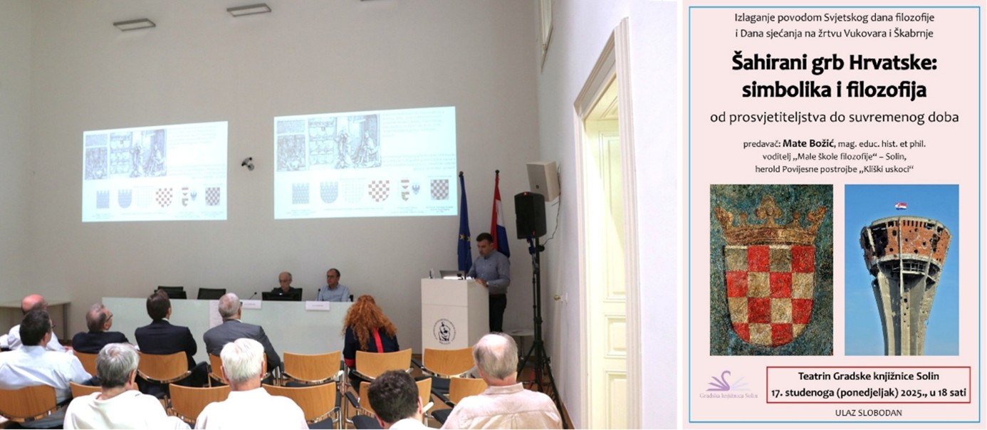 Povodom Svjetskog dana filozofije i uoči Dana sjećanja na žrtvu Vukovara i Škabrnje u Gradskoj knjižnici Solin priprema se novo izdanje „Male škole filozofije“ započete 2021. godine. Naime, nakon tada održanog ciklusa izlaganja o antičkoj filozofiji i najavljenog nastavka 2022./2023., tema srednjovjekovne filozofije dotaknuta je u prošlogodišnjem izlaganju: „Filozofi ranog srednjeg vijeka o Hrvatima: ime, podrijetlo i (ne)doseljenje!“. Ove godine pristup filozofiji iz povijesne perspektive nastavlja se kroz izlaganje „ŠAHIRANI GRB HRVATSKE: SIMBOLIKA I FILOZOFIJA od prosvjetiteljstva do suvremenog doba“ u kojem će biti riječi o novovjekovnoj i filozofiji suvremenog doba.