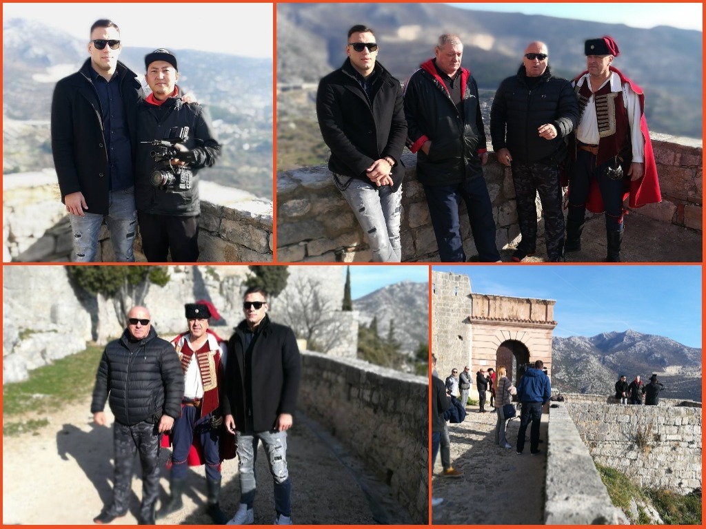Unutar zidina Kliške tvrđave Antonio Plazibat sa svojim trenerom i menadžerom Brankom Cikatićem, a u društvu Kliških uskoka je ugostio novinara japanske televizije.