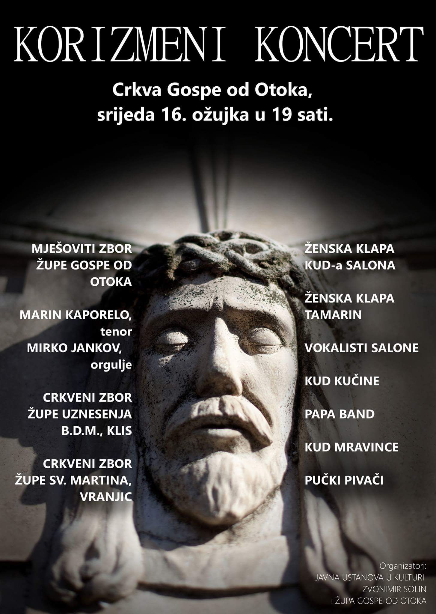 Naslovnica Grad Solin Kultura KORIZMENI KONCERT Grad SolinKultura KORIZMENI KONCERT Objavio Solin Live - 15. ožujka 2016. Ovu srijedu 16. ožujka, u 19 sati održat će se Korizmeni koncert u Crkvi Gospe od Otoka.
