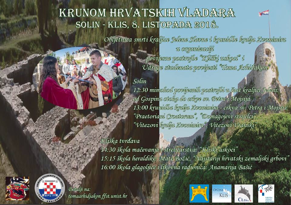 Povijesna postrojba „Kliški uskoci“ i Udruga studenata povijesti „Toma Arhiđakon“ na Dan neovisnosti Republike Hrvatske, 8. listopada 2018. godine, obilježit će dva datuma značajna za hrvatsku srednjovjekovnu povijest. Riječ je o obljetnici smrti kraljice Jelene (8. listopada 976.) i obljetnici krunidbe kralja Zvonimira (8. listopada 1075. ili 1076.).