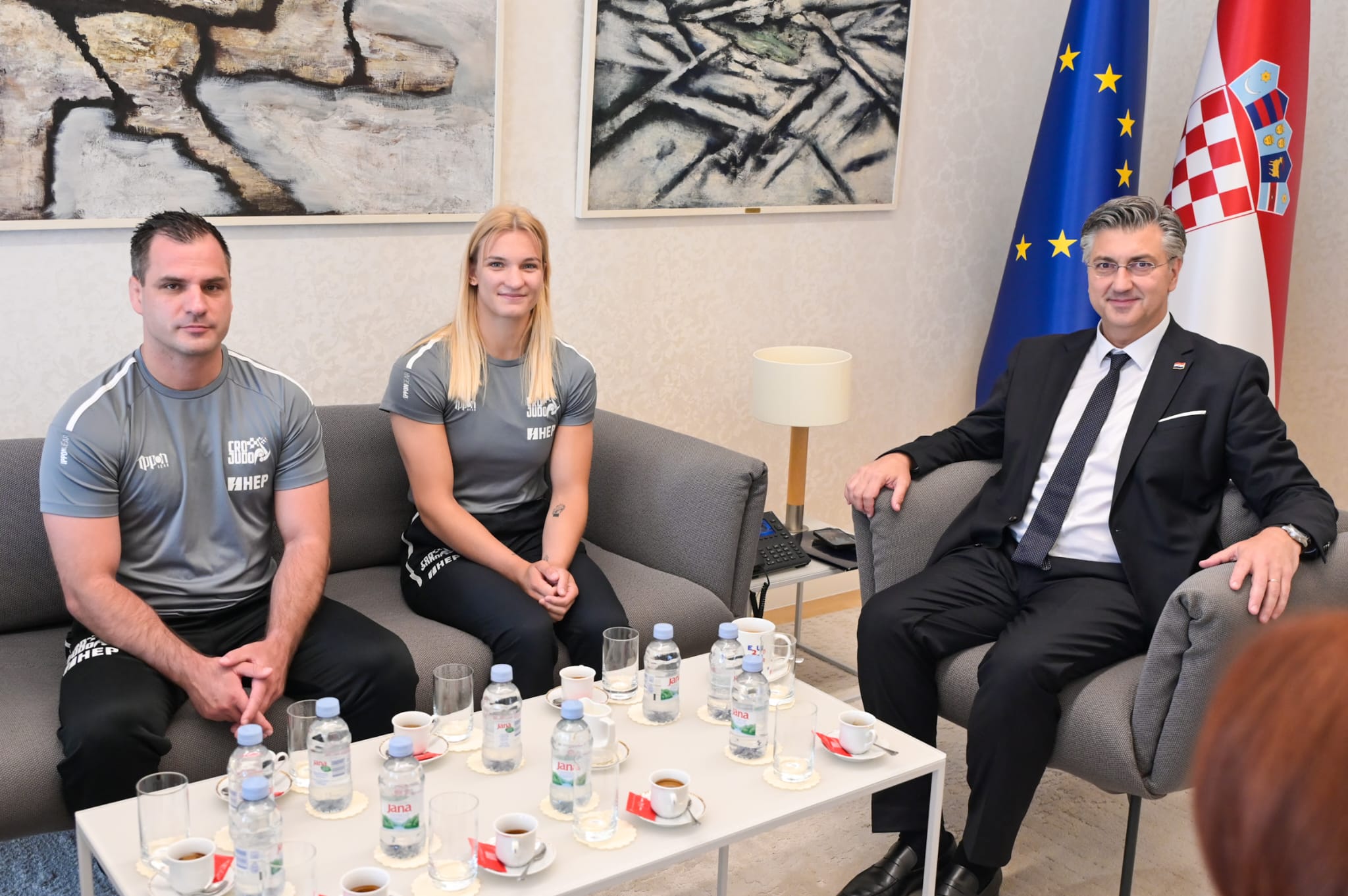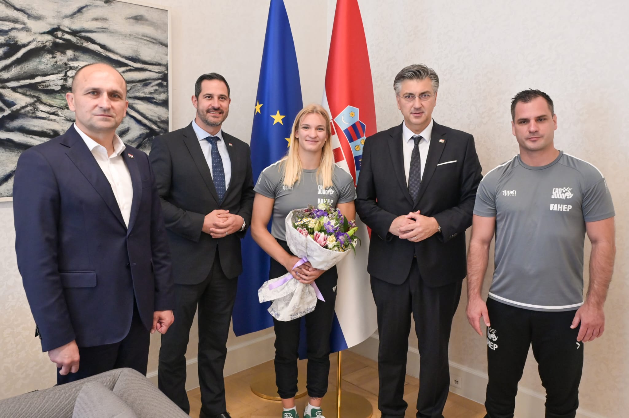 Predsjednik Vlade Andrej Plenković primio je osvajačicu srebrne medalje na Svjetskom prvenstvu u judu Laru Cvjetko i izaslanstvo Hrvatskog judo saveza na čelu s Tomislavom Čuljkom.