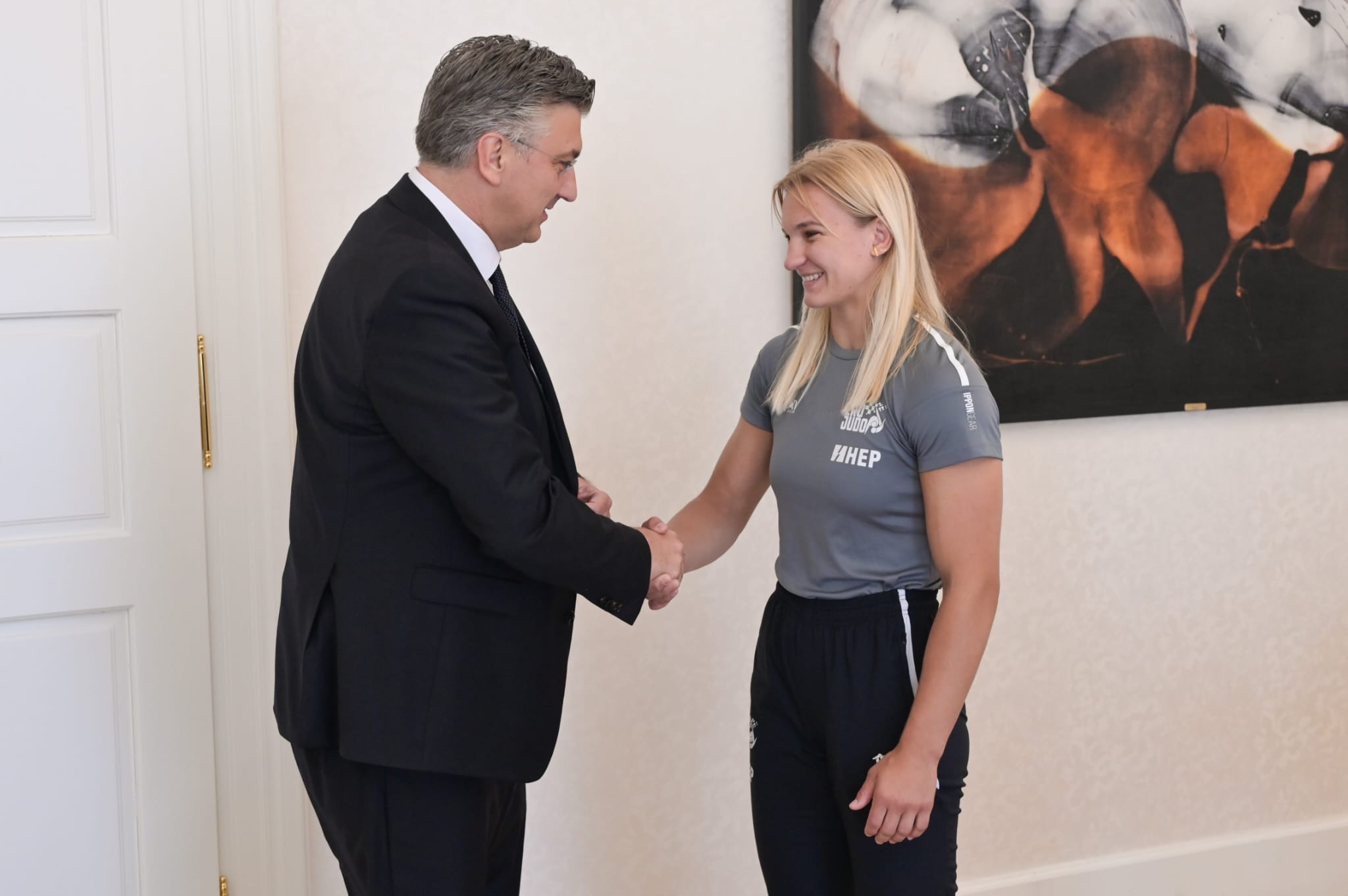 Uz predsjednika Vlade svjetsku viceprvakinju dočekao je i ministar turizma i sporta Tonči Glavina te ministar obrane Ivan Anušić.