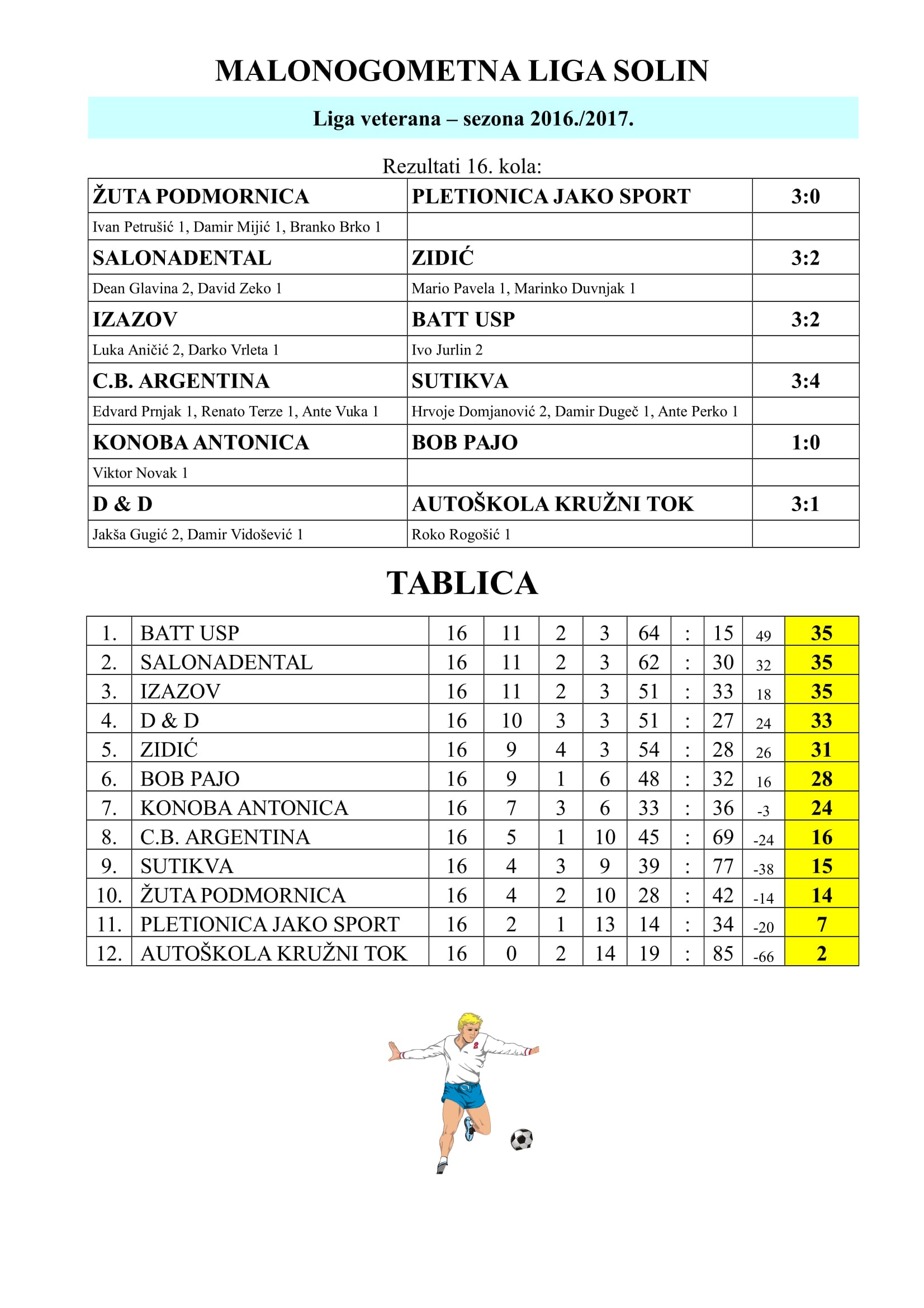 Naslovnica Grad Solin Sport MALONOGOMETNA LIGA SOLIN: Rezultati 16. kola Grad SolinSport MALONOGOMETNA LIGA SOLIN: Rezultati 16. kola Objavio Solin Live - 14. veljače 2017.