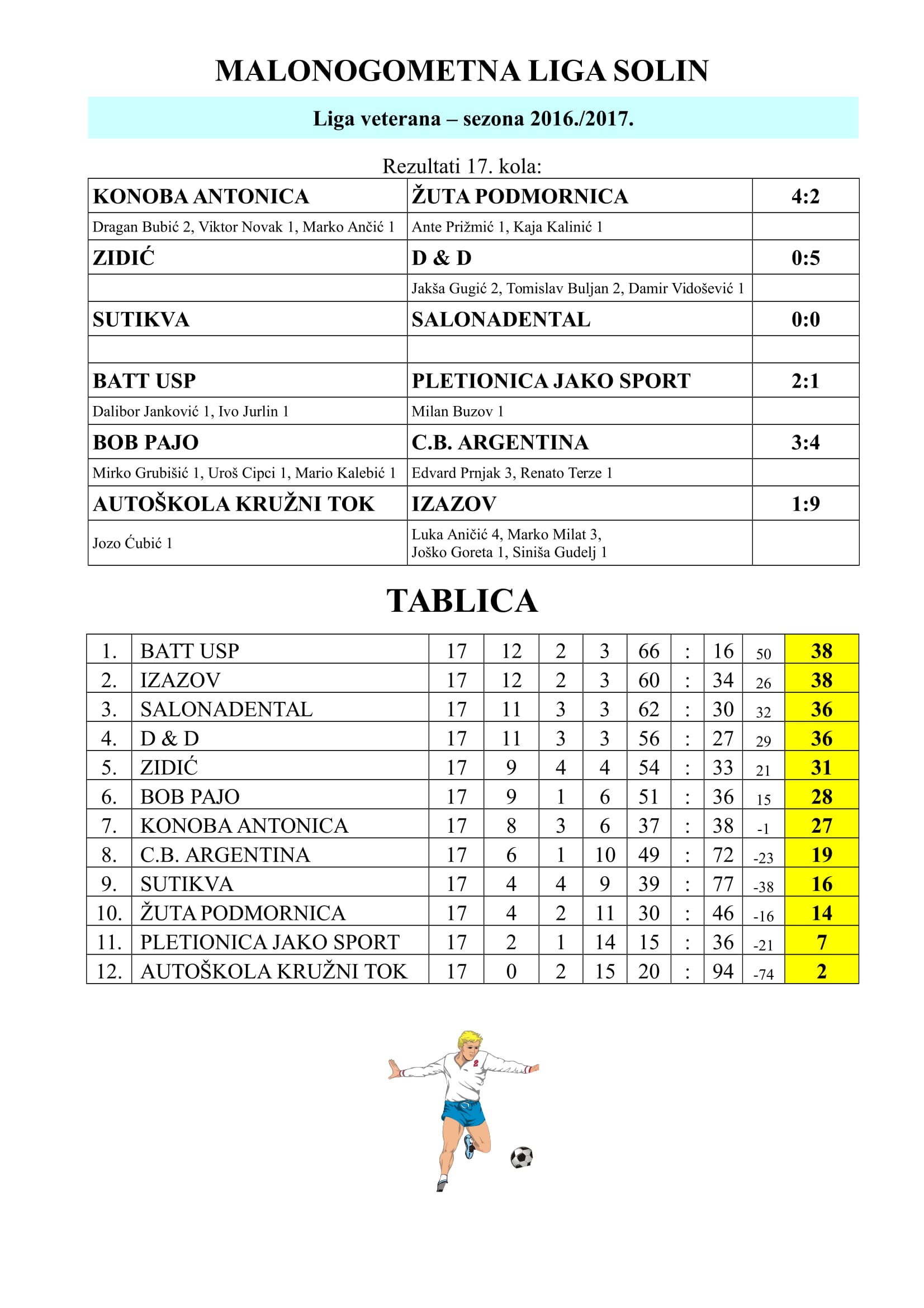 MALONOGOMETNA LIGA SOLIN: Rezultati 17. kola