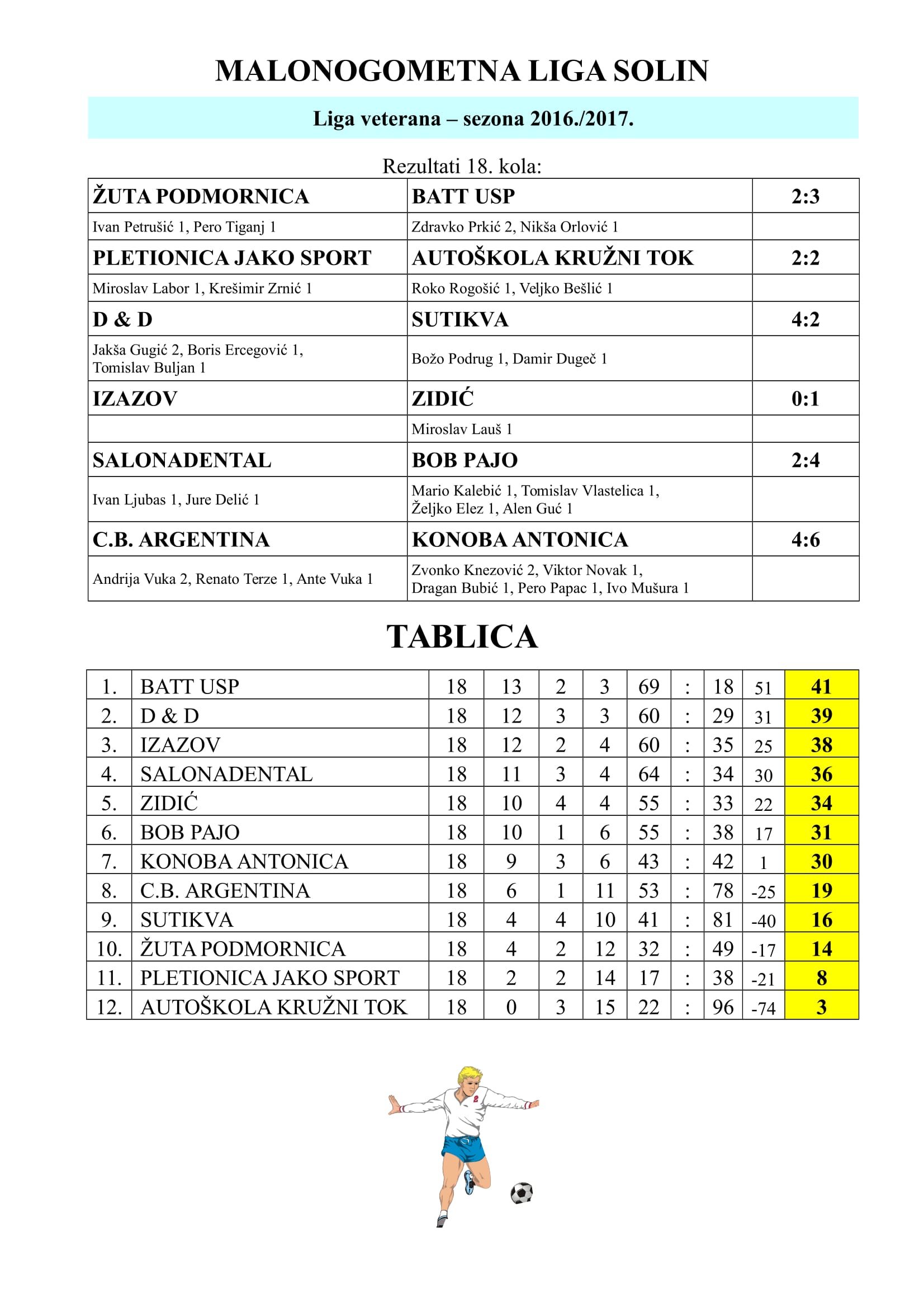 Naslovnica Grad Solin Sport MALONOGOMETNA LIGA SOLIN: Rezultati 18. kola Grad SolinSport MALONOGOMETNA LIGA SOLIN: Rezultati 18. kola Objavio Solin Live - 28. veljače 2017.