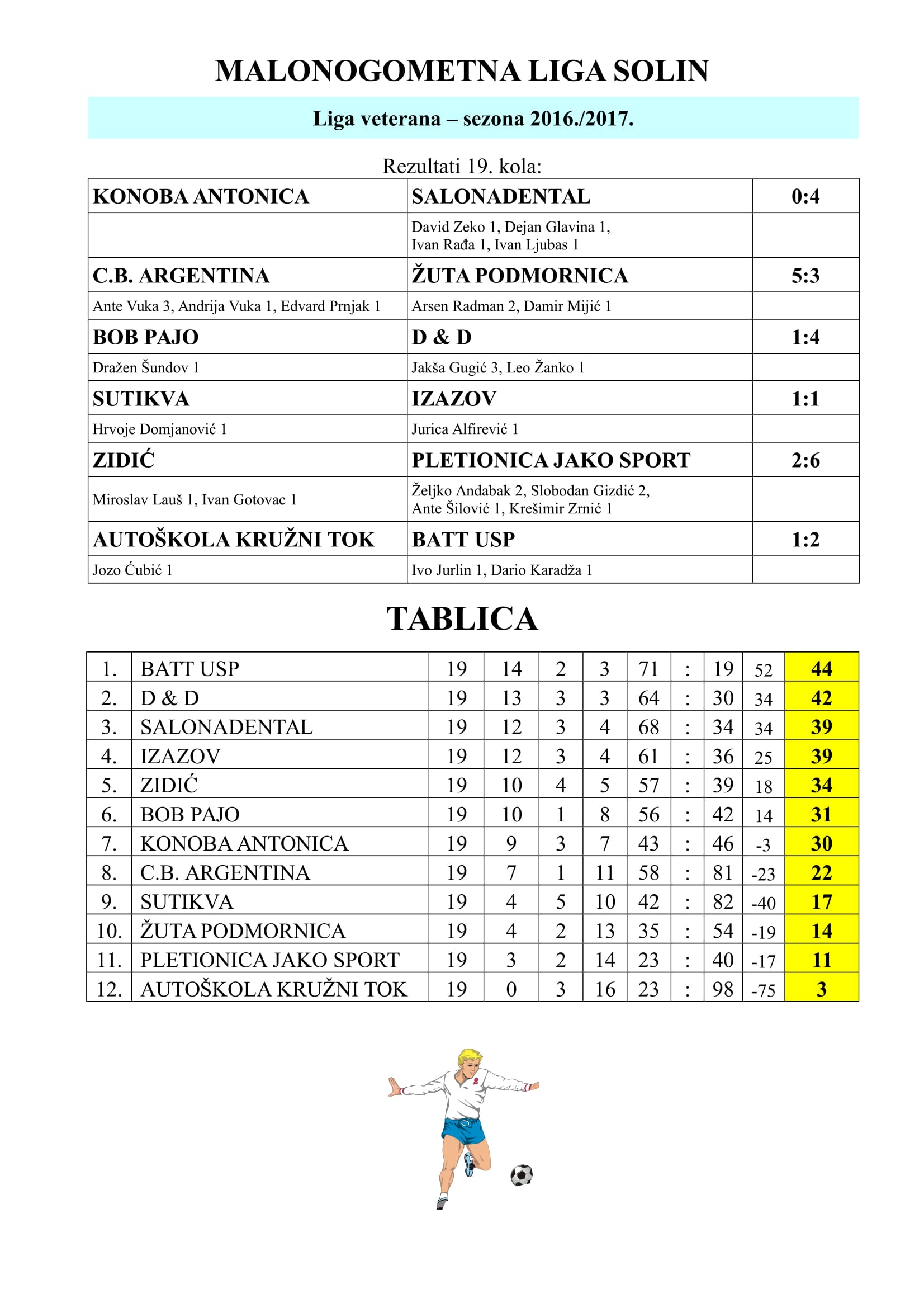 Naslovnica Grad Solin Sport MALONOGOMETNA LIGA SOLIN: Rezultati 19. kola Grad SolinSport MALONOGOMETNA LIGA SOLIN: Rezultati 19. kola Objavio Solin Live - 9. ožujka 2017.