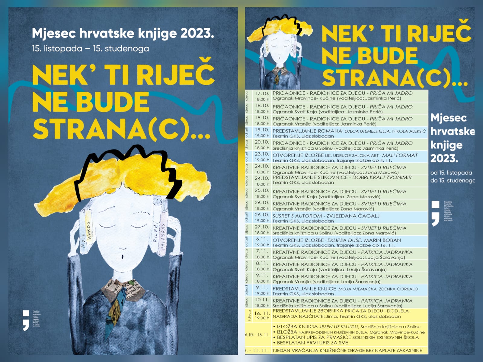 Gradska knjižnica Solin i ove je godine za svoje korisnike i posjetitelje u Mjesecu hrvatske knjige koji se održava pod sloganom „Nek’ ti riječ ne bude strana(c)…“ priredila niz zanimljivih aktivnosti za djecu i odrasle, ali i nekoliko pogodnosti.