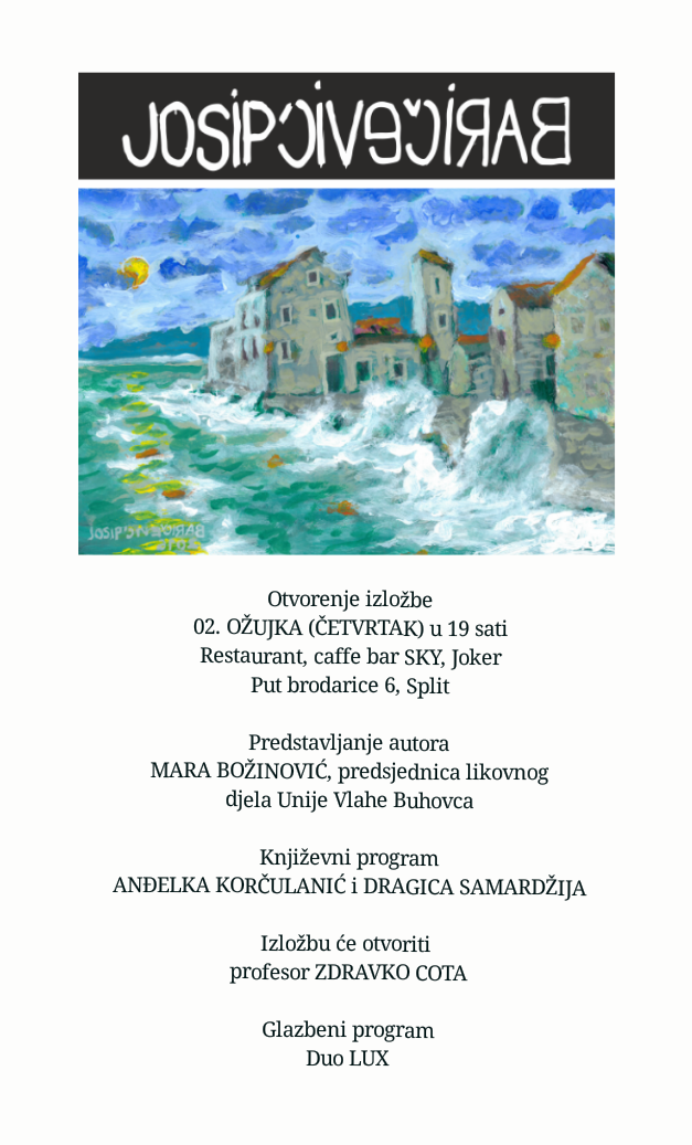 Josip Baričević rođen 06.06.1968 u Splitu. 1996. postaje član likovne radionice “ART-CLUB” koju vodi akademski slikar i likovni pedagog Tihomir Bašić, gdje dobiva osnovnu likovnu izobrazbu. Dvije godine pohađao je i likovnu radionicu Vendi Borović . Izlagao je na devet samostalnih i petdesetak skupnih izložbi u Hrvatskoj i inozemstvu, od posebno treba izdvojiti skupnu izložbu ,, Inter Imago New York 2“ u New Yorku, na kojoj je sudjelovao s nekolicinom hrvatskih akademskih slikara. Uz pokojnog. Edu Matkovića, , Stipe Tokića, jedan je od osnivača likovne udruge “SALONA ART” u Solinu, neko vrijeme bio je i njen predsjednik. Živi i stvara u Solinu.