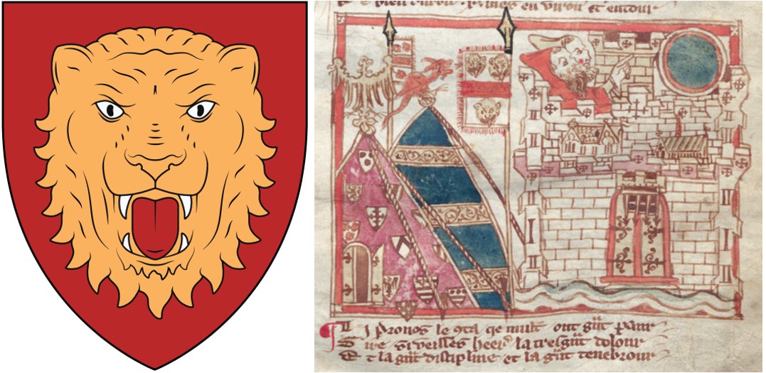 Grb „kralja Dalmacije“, oko 1285.-1300. (rekonstrukcija). Grbovnik „Vermandois“; Tri leopardove glave na zastavi uz šator „sina ugarskog vojvode“, 1275.-1300. Hannoverski rukopis „La Destructioun de Rome“ – „HRVATSKI GRBOVI…“