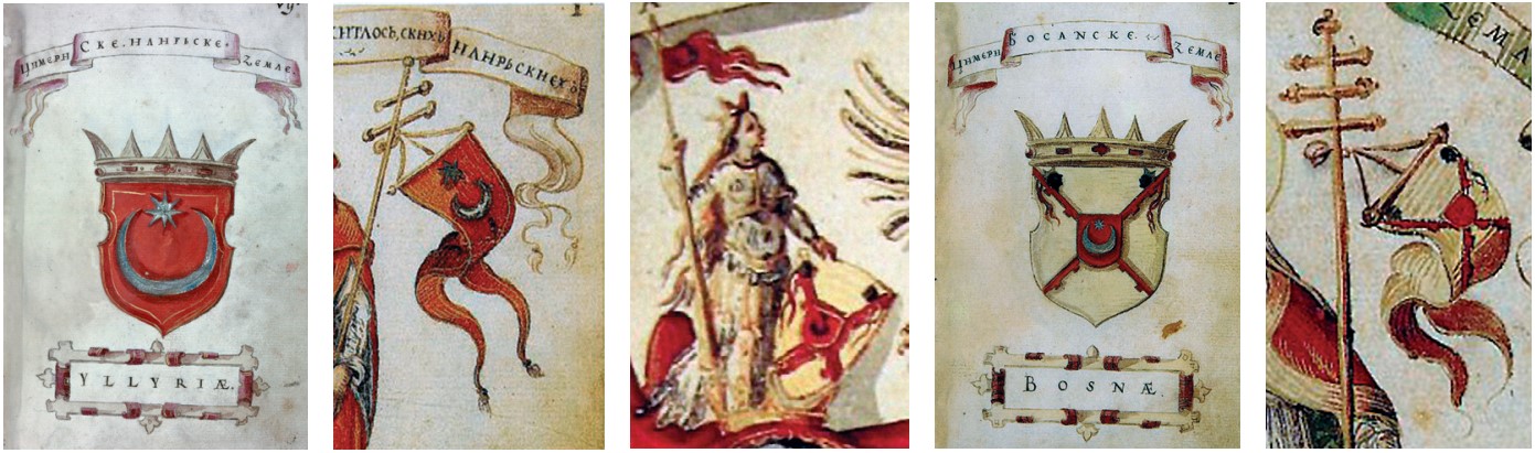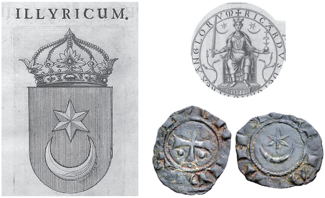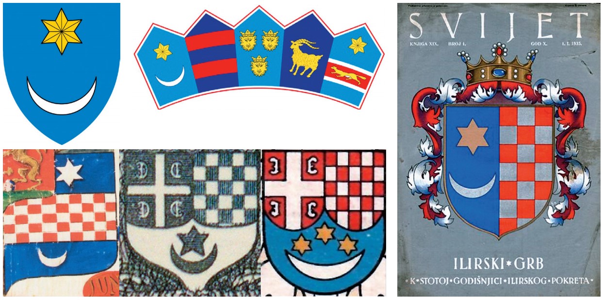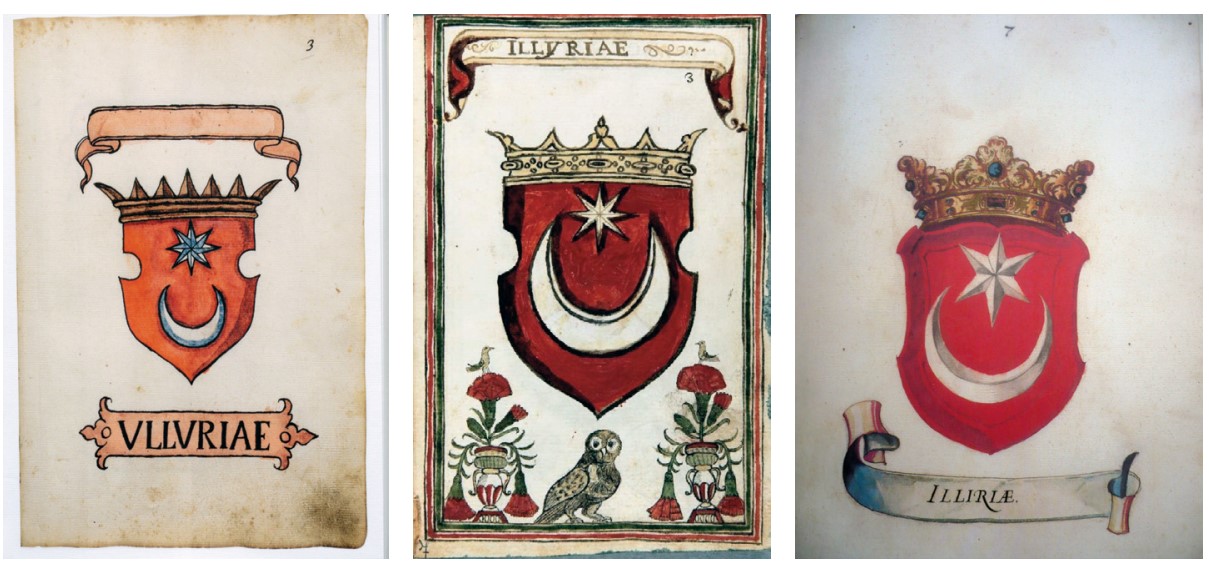 To se znamenje u grbovniku iz 1595. pojavljuje samostalno, ali i kao dio heraldičkog znamena pripisanog Bosanskom kraljevstvu – smještenom upravo u njegovom središtu, budući da se Bosna tada smatrala „srcem“ zamišljene Ilirije. Treba istaknuti kako u nešto ranije nastalom Sutješkom rodoslovlju kao simbol „Ilira – Bošnjana“ nalazimo također štit crvene boje sa srebrenim polumjesecom, ali (vrlo vjerojatno) bez zvijezde, što znači da je budući grb Ilirije tada još bio u svojoj protofazi. S druge strane, u istom izvoru u sklopu istovjetnog heraldičkog znamena pripisanog Bosanskom kraljevstvu, umjesto cjelovitog grba Ilirije, vidljiva je kruna Kotromanića – tj. stari dinastički simbol bosanskih vladara. Postavlja se pitanje zašto je vladarska kruna iz Rodoslovlja u grbovniku s kraja XVI. st. bila zamijenjena simbolima polumjeseca i zvijezde, odnosno što je u tom povijesnom kontekstu taj motiv značio?