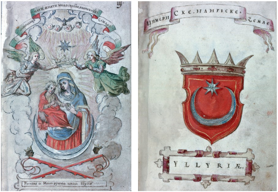 Te simbole u ovom kontekstu ne možemo izravno povezati s vrlo sličnim motivom na novcu hercega Andrije II. iz XII. i XIII. st., a osobito ne s Gajevim tumačenjima „leljiva“ u vidu poistovjećivanja antičkog ilirskog i ranosrednjovjekovnog slavenskog poganstva od Jadrana do Baltika i Urala. Dakle, u slučaju zemaljskog grba Ilirije s polumjesecom i zvijezdom, koji se pojavljuje krajem XVI. stoljeća, mlađak i zvijezda zapravo predstavljaju ikonografsku redukciju motiva Žene Apokalipse iz biblijske knjige Otkrivenja, odnosno Gospe Olovske. Čudotvorna slika Gospe Olovske štovala se među narodom u Bosni već od kraja XIV. stoljeća, a tvorci Korjenić-Neorićeva grbovnika su je u novim okolnostima promovirali u politički simbol i zaštitnicu imaginarnog „Ilirskoga Carstva“.