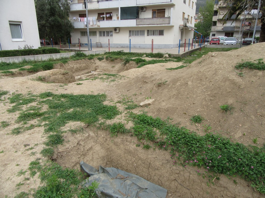 Stanovnici obližnjih zgrada (u kojima i ja živim ), skrenuli su pozornost na rupe koje su iskopane prije više od četrdeset dana zbog arheološkog istraživanja. Rupe se nalaze na terenu gdje je zamišljen parking za auta, tim djelom se kreću djeca i nisu adekvatno označene, niti su ograđene, te kao takve predstavljaju opasnost za lokalno stanovništvo.