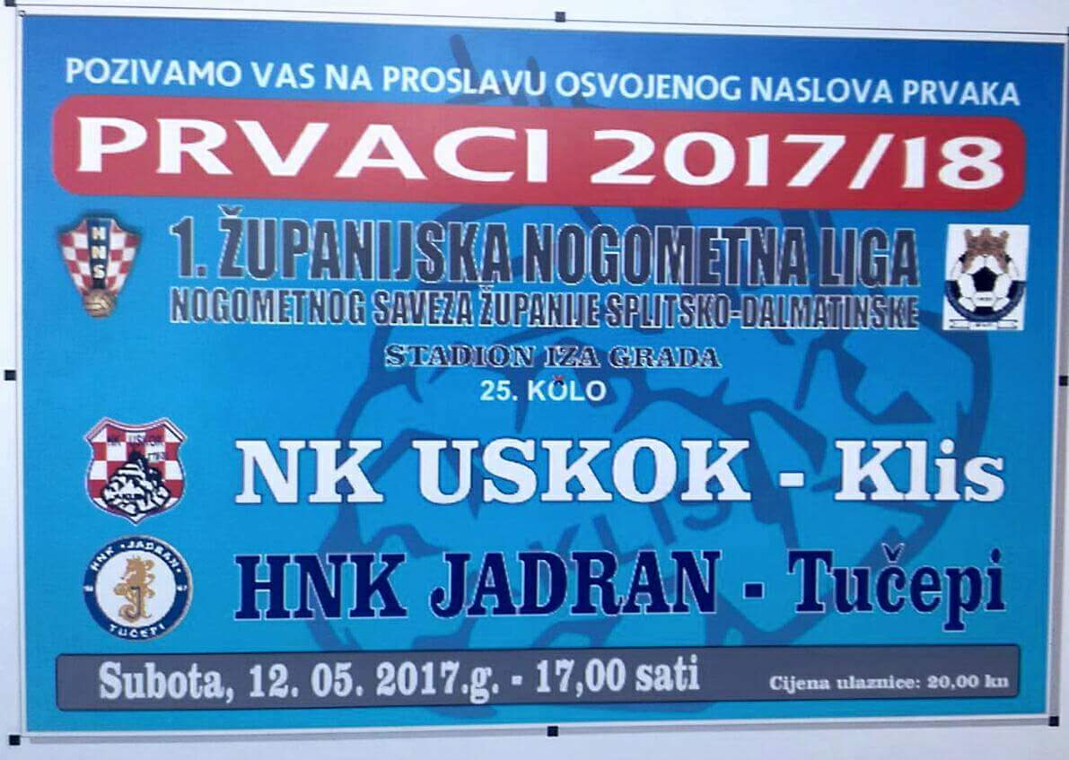 Naslovnica Vijesti Općina Klis NK Uskok poziva na proslavu osvojenog naslova prvaka VijestiOpćina Klis NK Uskok poziva na proslavu osvojenog naslova prvaka Objavio Solin Live - 11. svibnja 2018. Ovu subotu, 12. svibnja, u 17 sati NK Uskok vas poziva na proslavu osvojenog naslova prvaka.