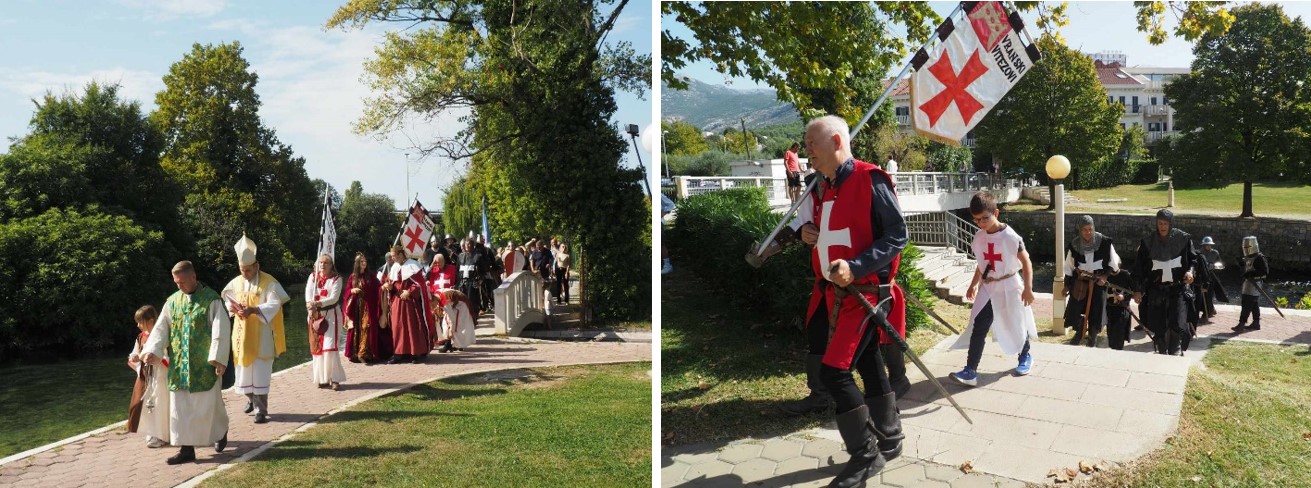 Dolazak povorke „oživljene povijesti“ na Gospin otok: Povijesna postrojba kralja Dmitra Zvonimira (Knin), Vitezovi Vranski (Vrana-Pakoštane), Red svetog Ivana Trogirskog (Trogir), Praetoriani Croatorum (Klis-Split) i izaslanstvo Hrvatskog plemićkog zbora – splitski ogranak