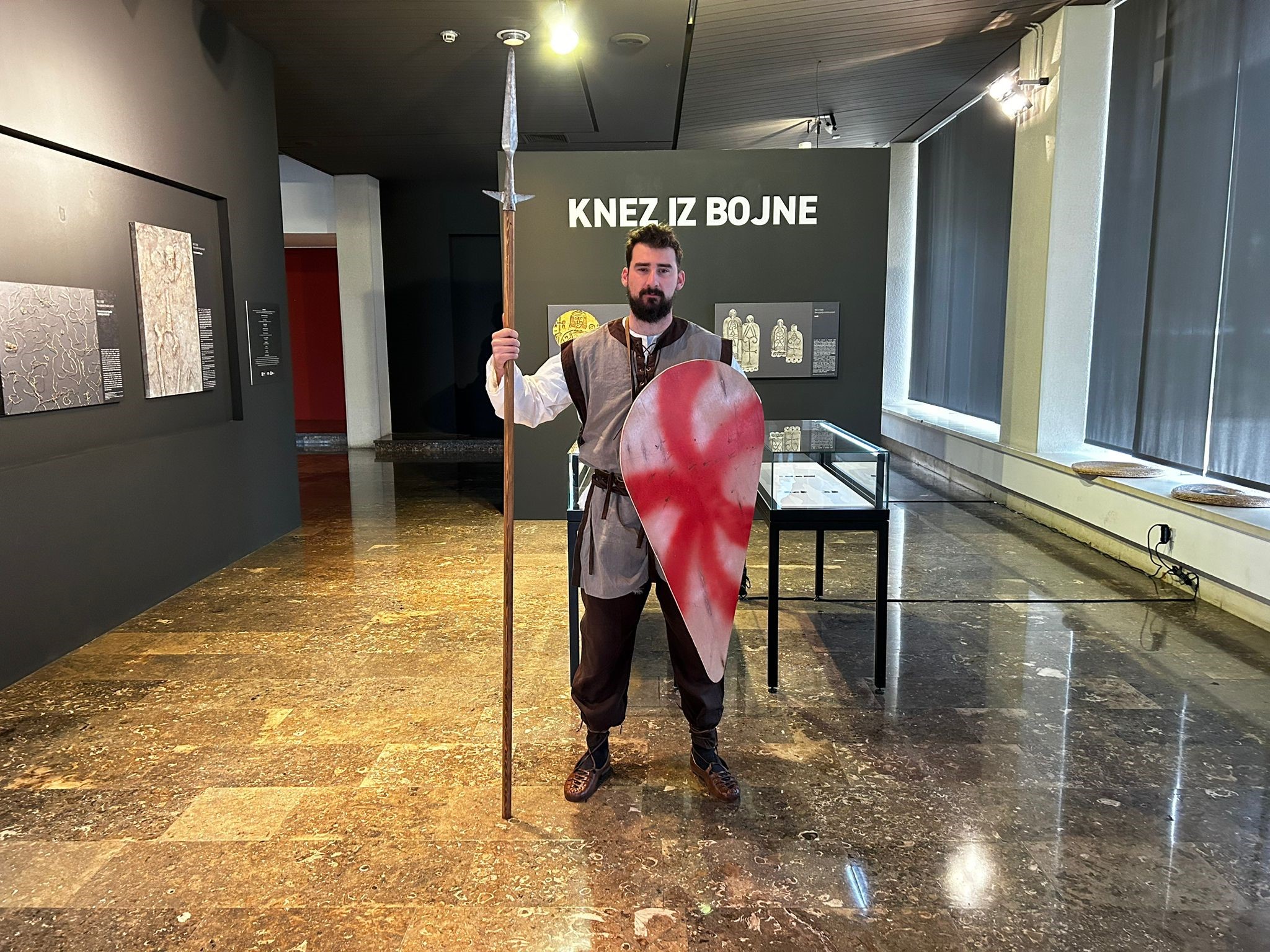 „Oživljeni“ starohrvatski ratnik povijesne postrojbe „Preatoriani Croatorum“ u Muzeju hrvatskih arheoloških spomenika u Splitu (prostor muzeja u kojem je moguće posjetiti i izložbu „Knez iz Bojne – novo poglavlje hrvatske povijesti“ otvorenu 8. studenoga 2023. u sklopu međunarodnog znanstvenog skupa „Dani Stjepana Gunjače“)