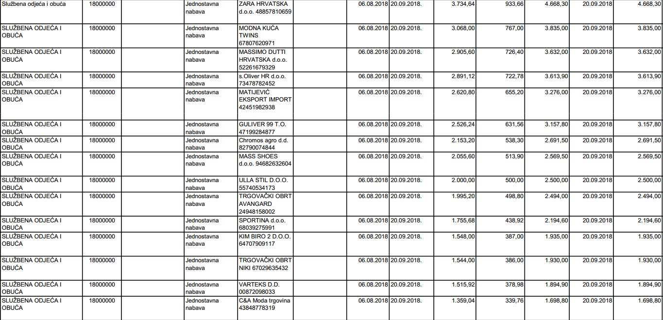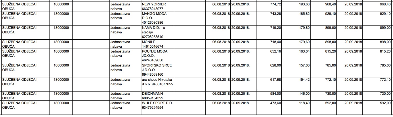 Danas u prilogu možete vidjeti gdje i koliko je županija potrošila novca na “službenu odjeću i obuću”, svi računi spadaju u jednostavnu nabavu.
