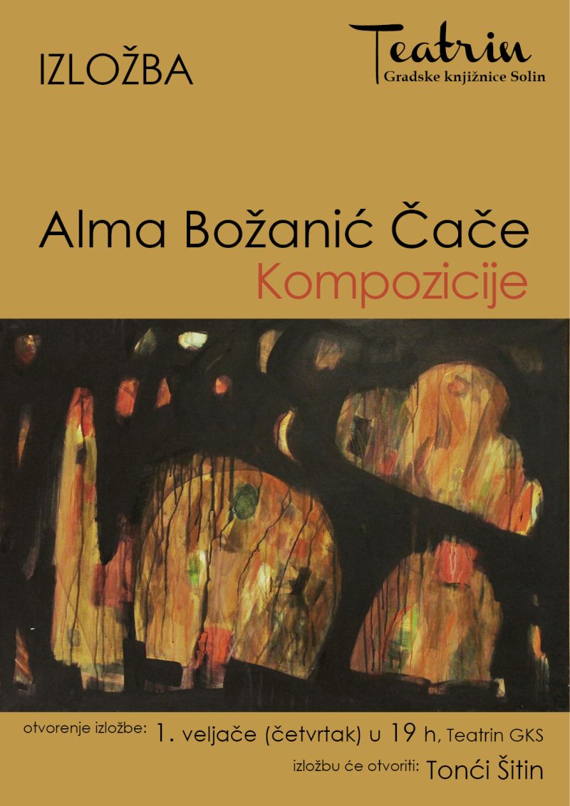 Gradska knjižnica Solin vas poziva na otvaranje izložbe Alme Božanić Čače pod imenom “Kompozicije”.