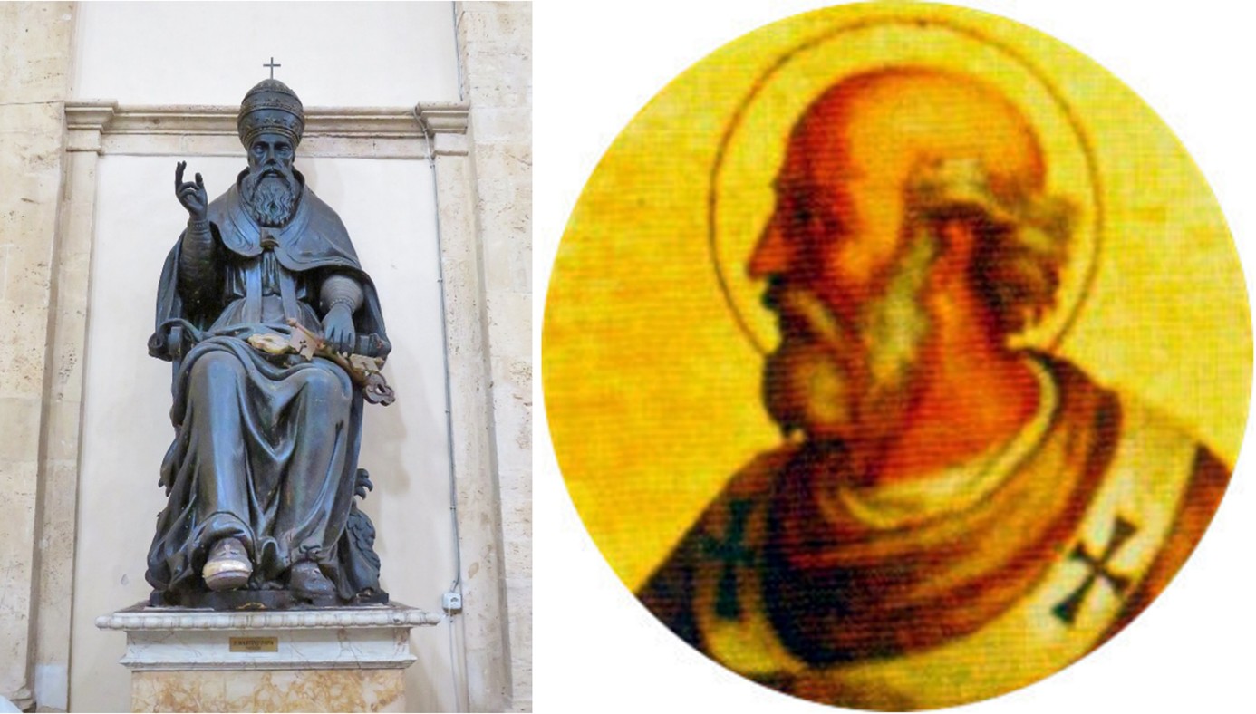 Drvena skulptura pape u crkvi Sv. Marije (Todi, središnja Italija) i prikaz pape Martina I. (649.-655.) u rimskoj bazilici Sv. Pavla izvan zidina – Martin je kao papin poslanik u vrijeme Ivana IV. prikupljao kosti mučenika s istočne obale Jadrana uključujući i relikvije sv. Dujma te sv. Venancija