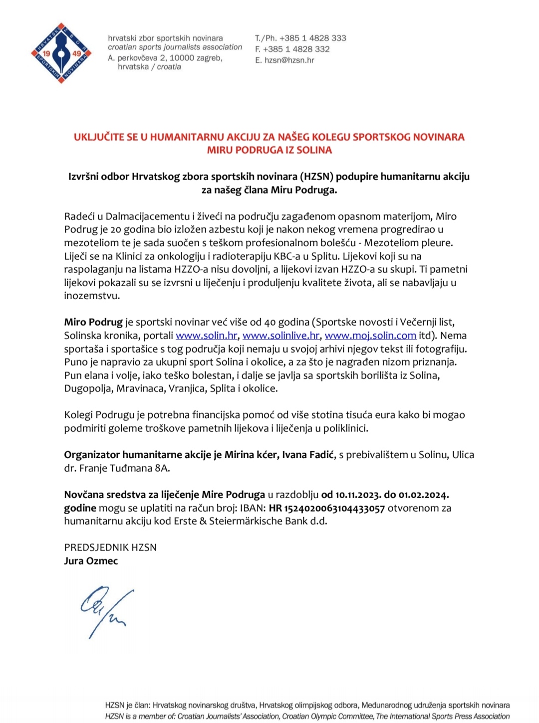 Dobija san dopis HZSN-a kako naš prijatelj triba pomoć. To je najmanji problem jer san siguran kako će većina naših sugrađana dati prilog, no ljuti što naše bogato društvo ne iznalazi rješenja za ovakve slučajeve.