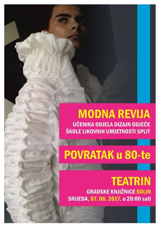 [quote type=”border_top”]Povratak u 80-te je naziv Modne revije učenika odjela Dizajn odjeće Škole likovnih umjetnosti Split[/quote]