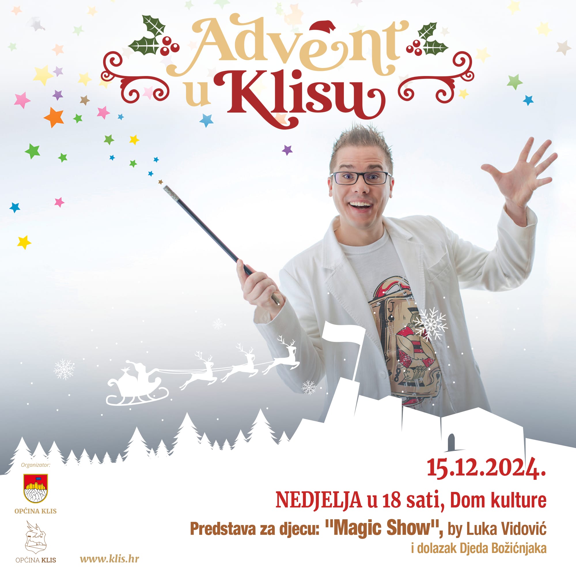 Dođite na čarobni Magic Show poznatog mađioničara Luka Vidovića koji počinje u 18:00 sati. Nakon predstave, dolazi omiljeni Djed Božićnjak sa poklonima za svu djecu!