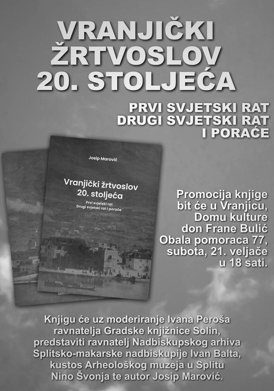 Predstavljanje knjige održati će u subotu, 21. veljače u 18 sati, u Vranjicu, u Domu kulture don Frane Bulić, na adresi Obala pomoraca 77.
