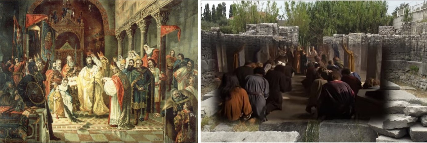 Uprizorenje krunidbe 8. listopada 2024. godine među ostatcima krunidbene bazilike Sv. Petra i Mojsija („Šuplja crkva“); Povijesne postrojbe starohrvatskog doba: „Vitezovi vranski“, „Povijesna postrojba kralja Dmitra Zvonimira“, „Vitezovi svetog Ivana Trogirskog“ i „Praetoriani Croatorum“ uz učenice i učenike osnovnih škola iz Klisa (OŠ „Petar Kružić“) i Splita (OŠ „Visoka“ i OŠ „Žnjan-Pazdigrad“) prilikom sedmog uprizorenja Zvonimirove krunidbe