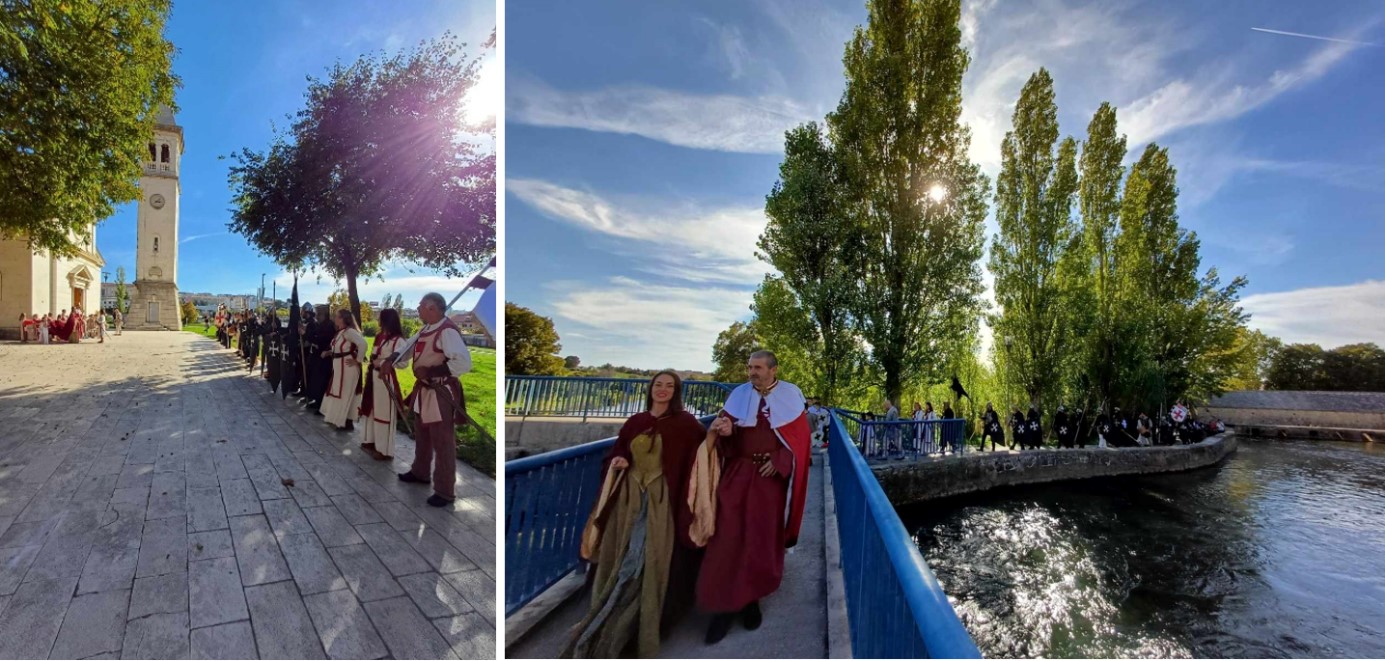Sedmo odavanje počasti povijesnih postrojbi kraljici Jeleni „Slavnoj“ na Gospinom otoku u Solinu i svečani mimohod uz tok rijeke Jadro (u pozadini je vidljiva Gašpina mlinica iz XVIII. stoljeća)