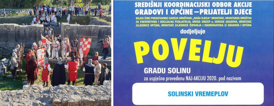 Uprizorenje Zvonimirove krunidbe 8. listopada 2020. godine koja je bila dio programa „Solinskog vremeplova“ zahvaljujući kojem je središnji koordinacijski odbor akcije Gradovi i općine prijatelji djece Solinu dodijelio Povelju „Naj-akcija u 2020.“. Za najvažniji cilj tog projekta navedeno je razvijanje svijesti kod djece i mladih o potrebi očuvanja duhovno povijesno-kulturne baštine i nacionalnoga identiteta, a njemu su sudjelovali učenici i polaznici solinskih osnovnih škola i vrtića