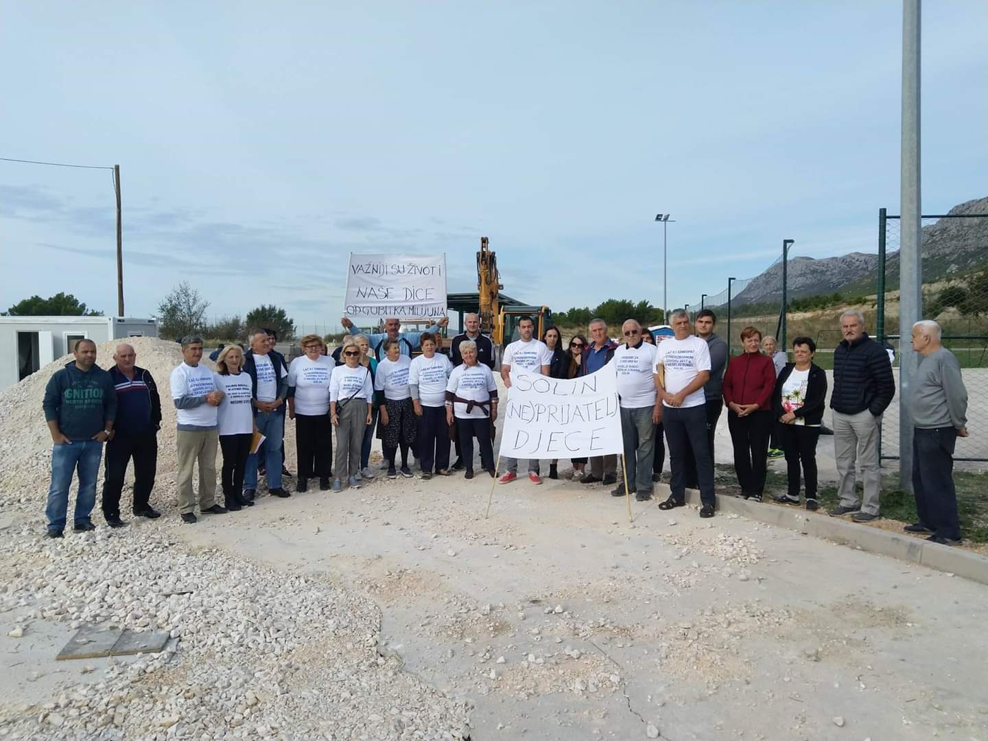 Zbog spontanog prosvjeda građana, gradilište je ograđeno“, Branko Parat iz građanske inicijative za čisti okoliš – Mjesni odbor Srednja strana Solin ističe da je ograđivanje odrađeno neprofesionalno zbog čega se dijete ozlijedilo na žicama postavljenima prema dječjem igralištu.