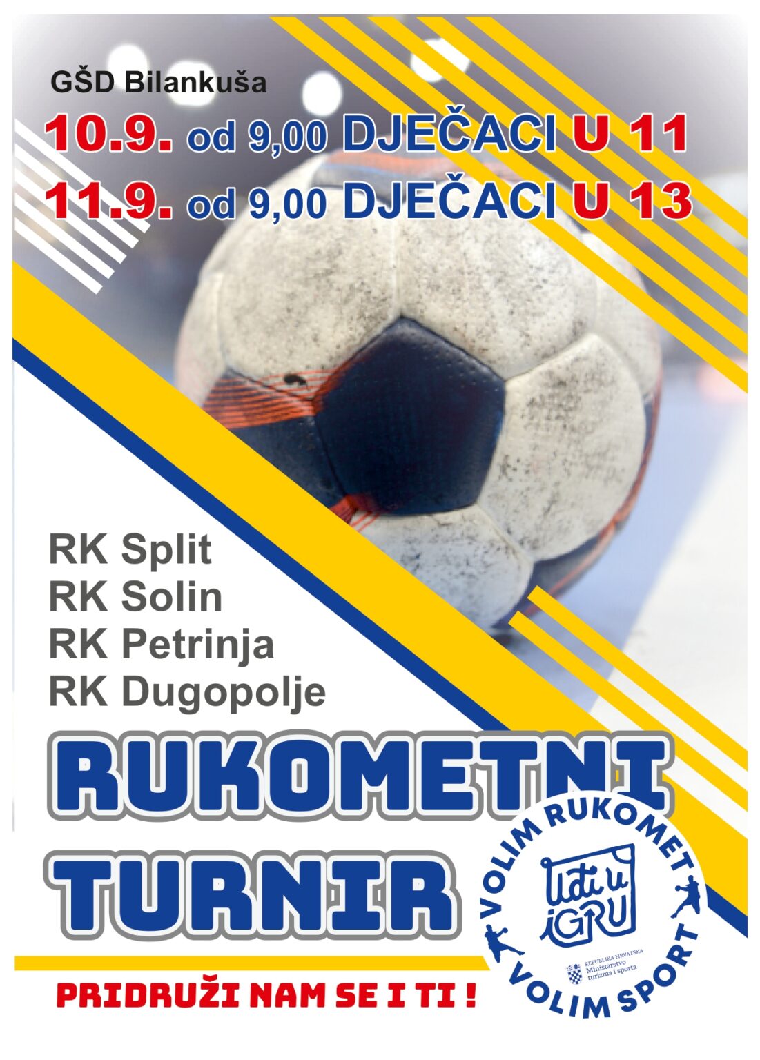 U organizaciji Rukometnog kluba “Solin”, a uz potporu Ministarstva turizma i sporta, 10. i 11. rujna 2022. godine, održat će se rukometni turnir za dječake U11 i U13 u Gradskoj športskoj dvorani na Bilankuši. Organizatori najavljuju kako će u revijalnoj nogometnoj utakmici kao “Hajduk special power team” nastupiti i njihovi prijatelji iz Udruge Down 21.