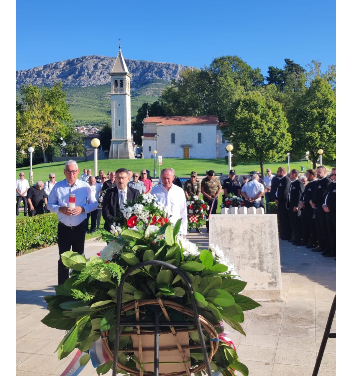 Potom su predstavnici Grada, Gradskog vijeća, braniteljskih udruga i policije položili cvijeće i zapalili svijeće pred spomen obilježjem poginulima u Domovinskom ratu. Molitvu je predvodio don Stipan Šurlin, a prigodnim riječima okupljenima se obratio gradonačelnik Dalibor Ninčević.