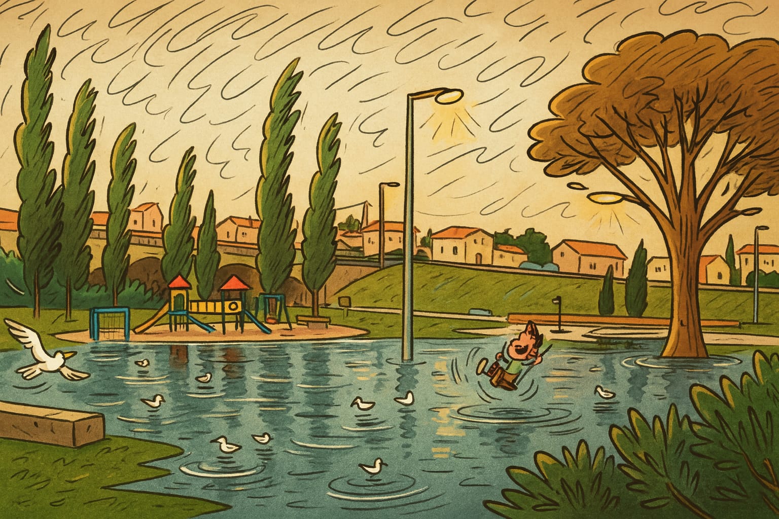 Parkovi i igrališta pretvorili su se u jezerca… ljuljačka je visila iznad “Solinskog mora”, skate park postao “lake park”, a galebovi su se ponašali kao da su na godišnjem.