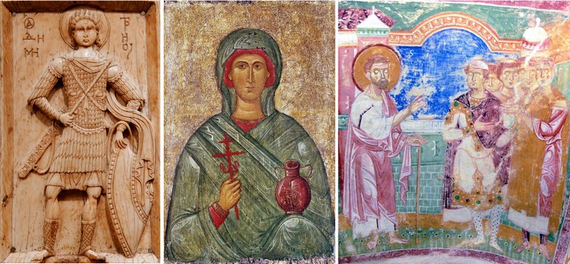 Kao što su kosti sv. Dujma i sv. Anastazija bile prenesene iz Salone u Split (a možda i dalje u Rim), tako je i tijelo sv. Demetrija (Dmitra) u tim nemirnim vremenima iz Sirmija (današnje Srijemske Mitrovice) bilo preneseno u Solun na obalama Egejskog mora. Tako je sv. Demetrije daleko od mjesta svoga mučeništva postao grčki nacionalni svetac. Relikvije druge srijemske mučenice – sv. Anastazije, još su u drugoj polovici V. st. bile prenesene u Konstantinopol, da bi ih car Nicifor, nakon izmirenja sa Zadranima, početkom IX. stoljeća darovao zadarskom biskupu Donatu. Tako se danas sv. Anastazija u Zadru štuje kao gradska suzaštitnica pod hrvatskim narodnim imenom – sv. Stošija. I drugdje na istočnojadranskom prostoru kosti mučenika su kao dragocjeni zalog bile prenesene u sigurnije krajeve: relikvije Fortunata, Donata, Silvana, Venusta i Hermagore u Akvileju, a potom iz Akvileje djelomično u Concordiu (Portoguraro) i Milano. Iako je Hermagora mučeništvo doživio u panonskim krajevima za cara Dioklecijana, akvilejska crkva ga je također proglasila učenikom sv. Petra i prvim biskupom Akvileje.