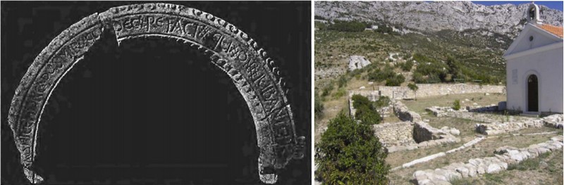 Mramorni polukružni luk crkvene pregrade s natpisom pronađen u Kaštel Sućurcu, koji potječe iz VII./VIII. st.; arheološki lokalitet uz sadašnju crkvu sv. Jurja na Putalju