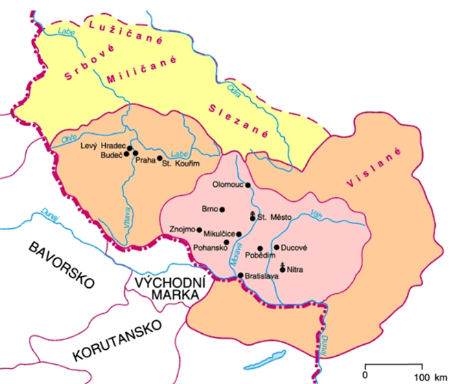 Prikaz područja dvaju susjednih srednjoeuropskih hrvatskih plemena u granicama današnje Češke