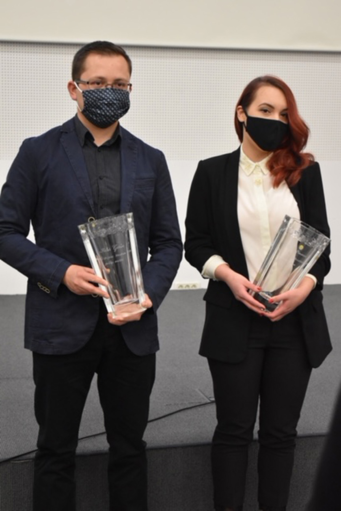 Nagrađeni Petar Gorša i Mateja Omazić, i njihov trener Siniša Vitez